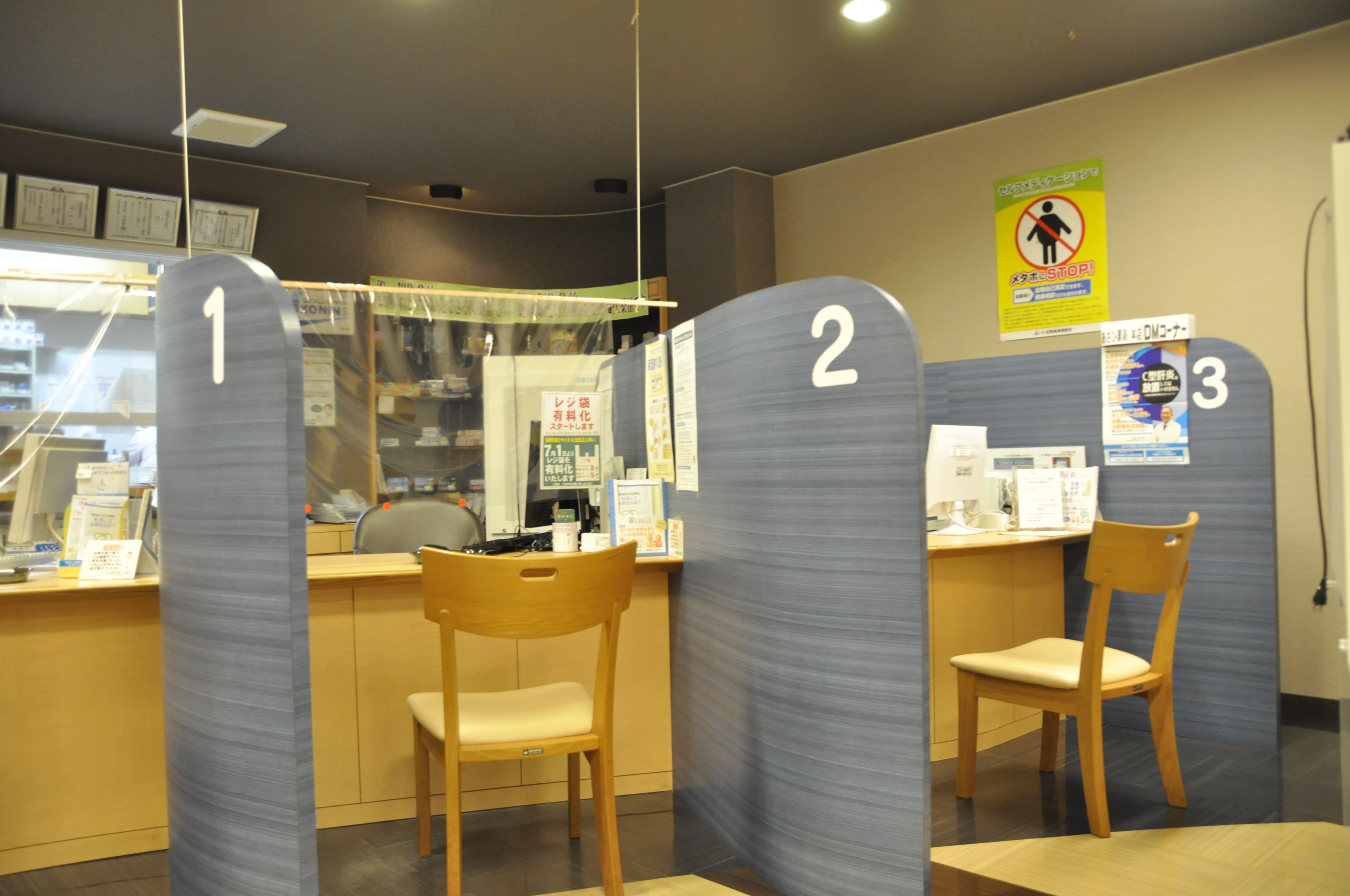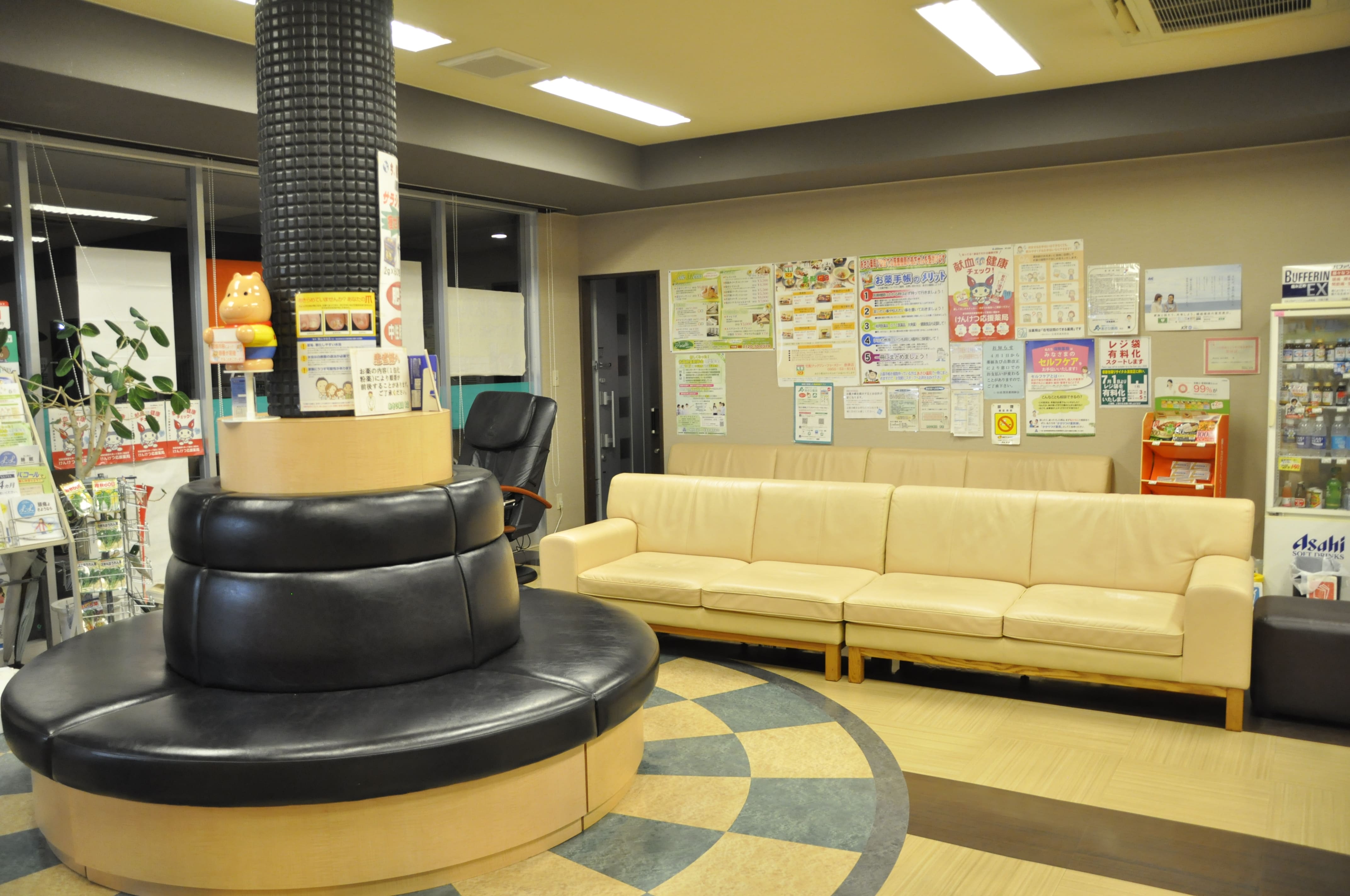完全バリアフリーで障害者用トイレも完備しております。 フリードリンクやマッサージ機(無料)、血圧測定器を完備しております。 ドラッグと併設しておりますので、待ち時間に気軽にお買い物ができます。 市販薬・サプリメントなどの相談もOK!