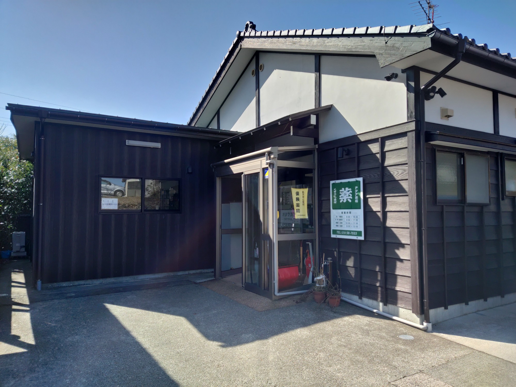 相川金山行きバス停版画村下車後徒歩1分の場所に、当薬局はあります。 患者様に愛される薬局を目標に、日々邁進しております。 服薬説明の際には、患者様に安心安全にお薬を使用して頂けるようしっかり丁寧にお話しするよう努めています。 お薬、健康に関するお困りごとがあれば、ぜひお気軽にお立ち寄りください。
