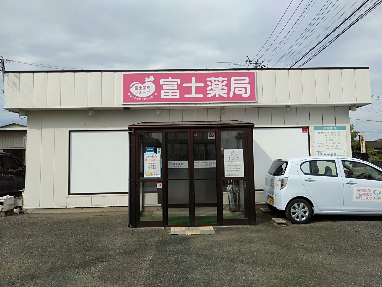 富士薬局あずま店は古作クリニックの裏にあります。営業日が少なくご迷惑をおかけしております。ぜひLINEで処方せん受付予約をご利用ください。お薬をご自宅にお届けにうかがうこともできますのでお気軽にご相談ください。